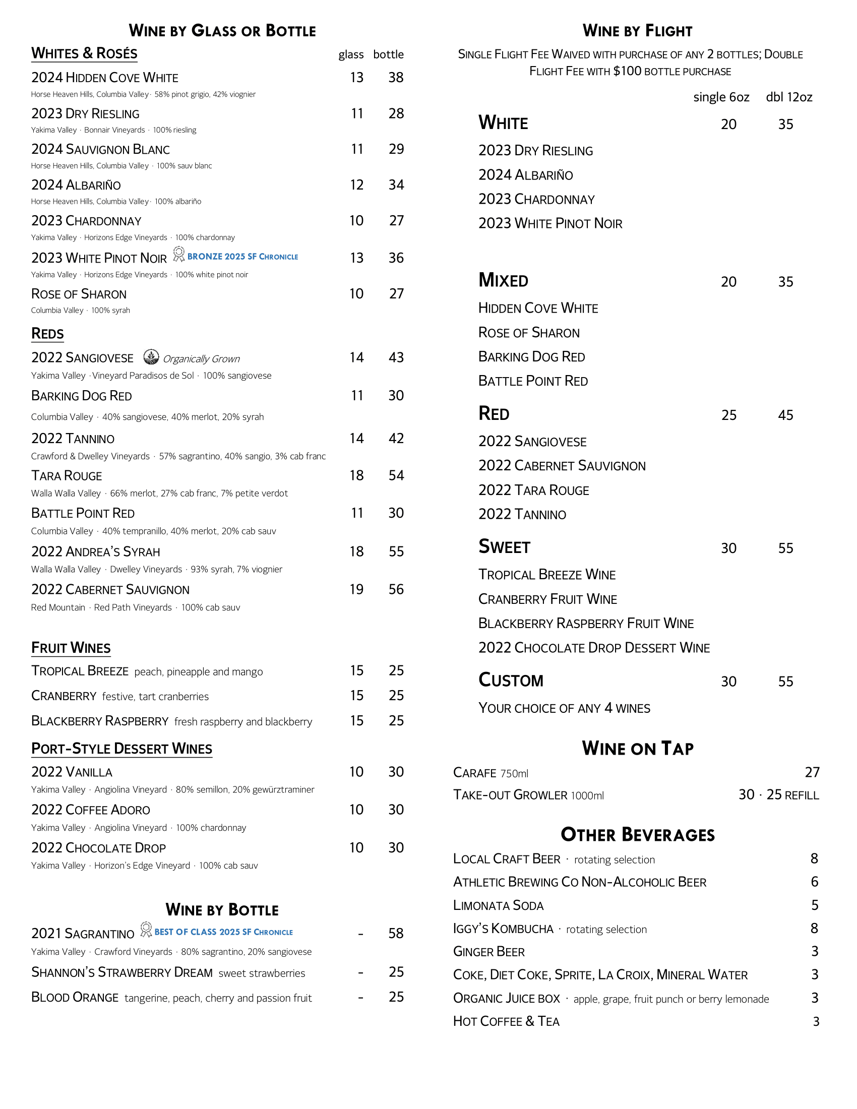 Wine Tasting Menu